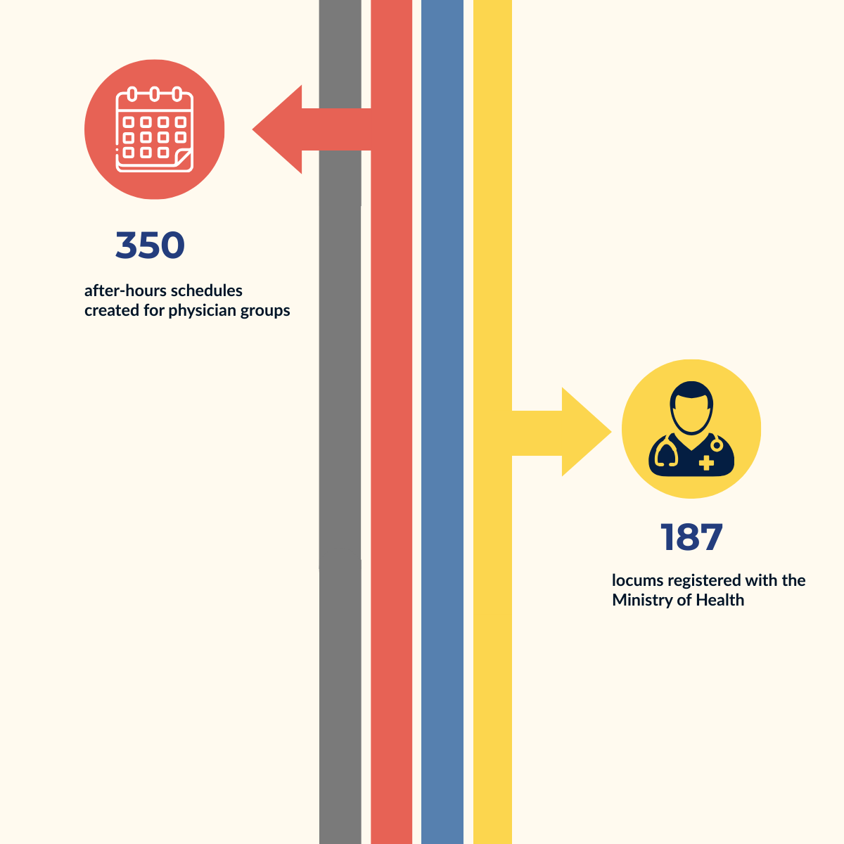 Operational support extends beyond billing. This year, we helped clinics stay compliant and organized by managing key administrative workflows with our FHO group management services, including creating 350 after-hours schedules and registering over 180 locums with the Ministry of Health (MOH).
