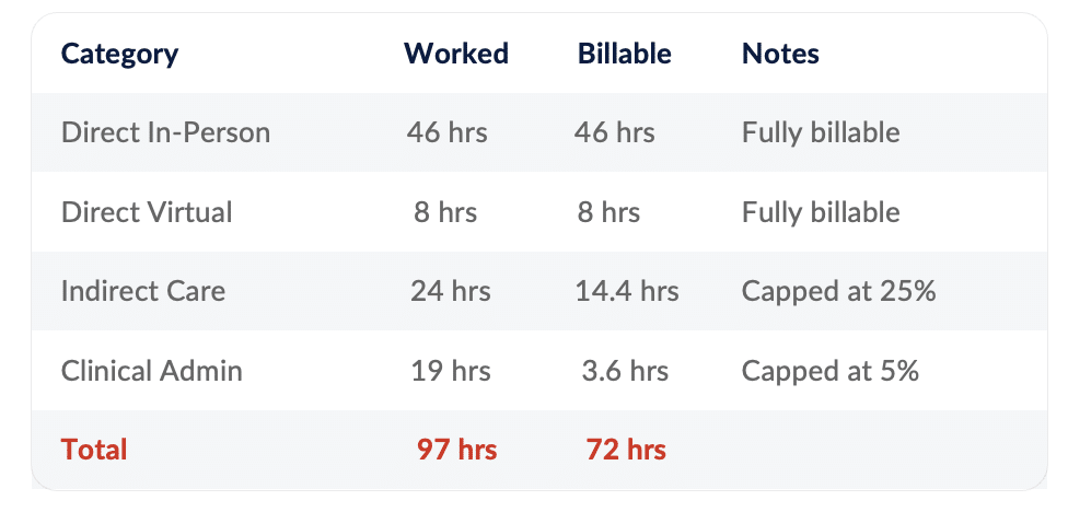 Understanding these ratios is critical to ensuring you are not billing over the maximum while fully capturing eligible time under the model.